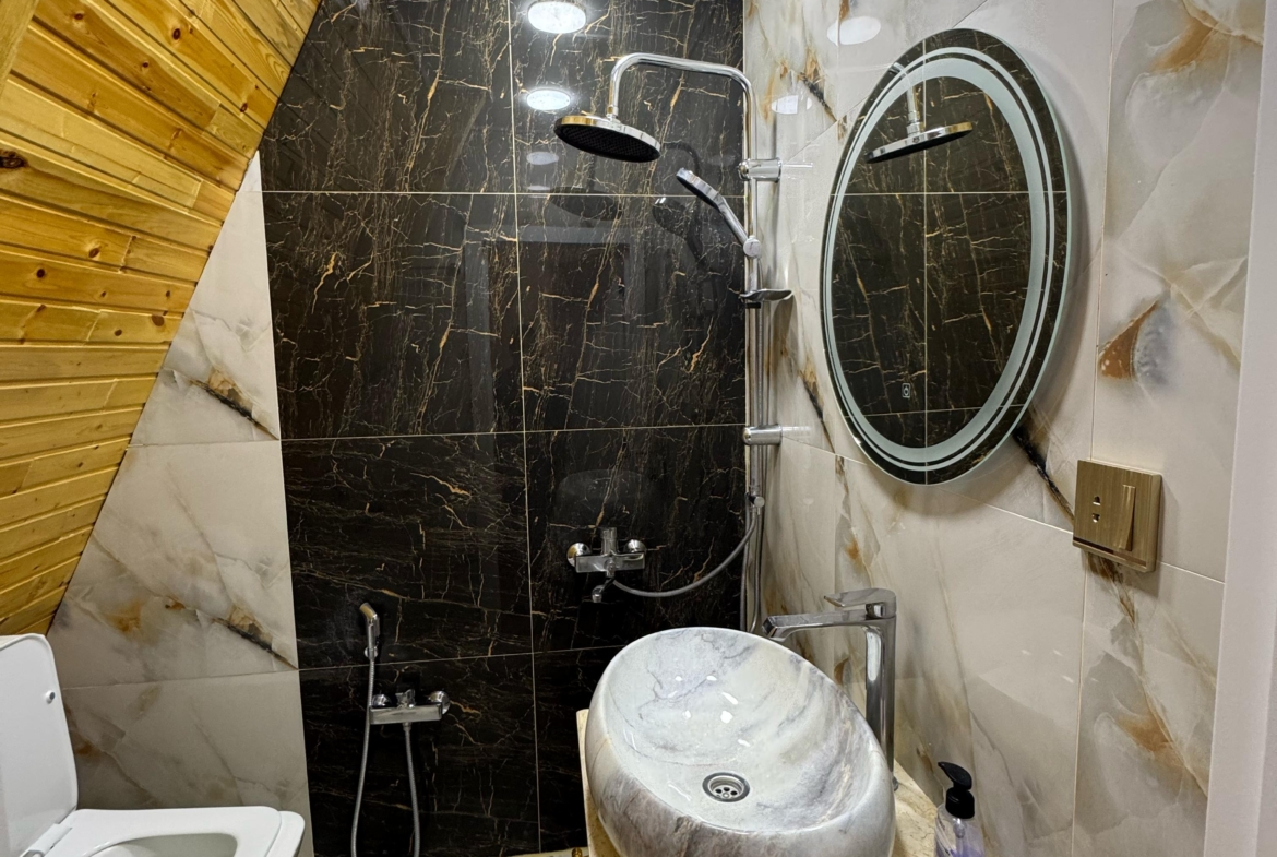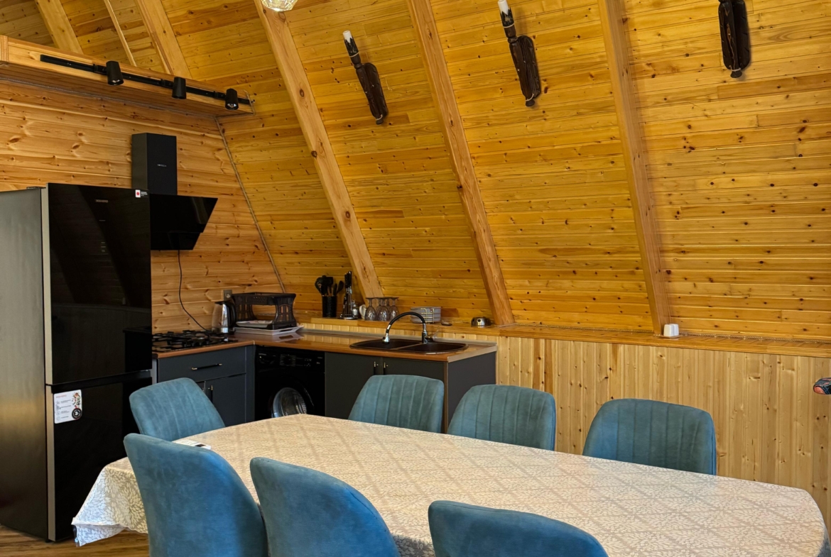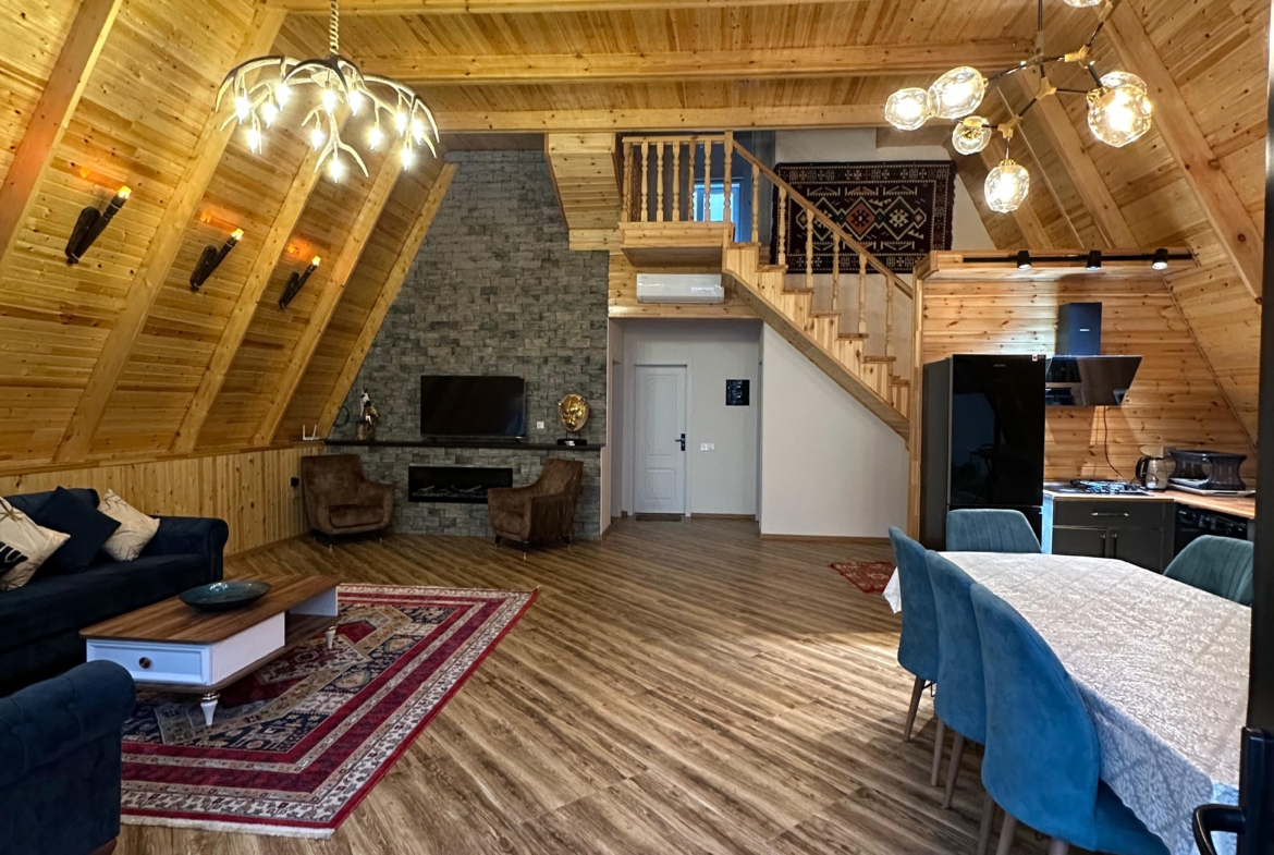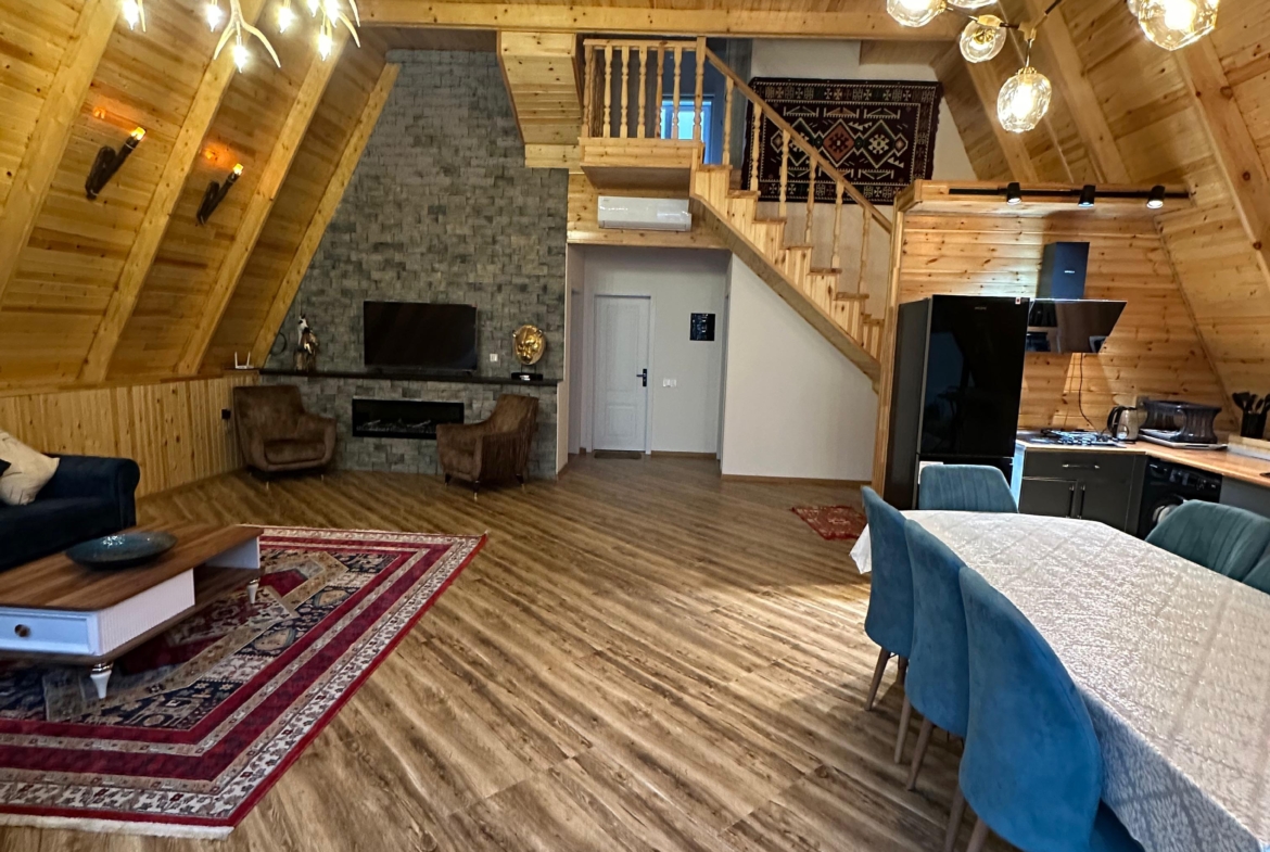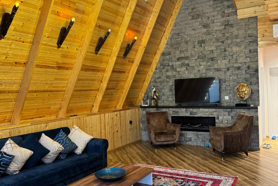 Təbiətin tam qoynunda, möhtəşəm dağ mənzərəsi və sakit atmosferdə yerləşən bu eksklüziv A-Frame villa komfort və estetik dizaynı bir araya gətirir.